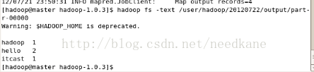 输出文件放在一个公用文件夹中。通常命名为part-nnnnn。这里的nnnnn是reducer的分区ID。RecordWriter对输出结果进行格式化。而RecordReader对输入格式进行解析