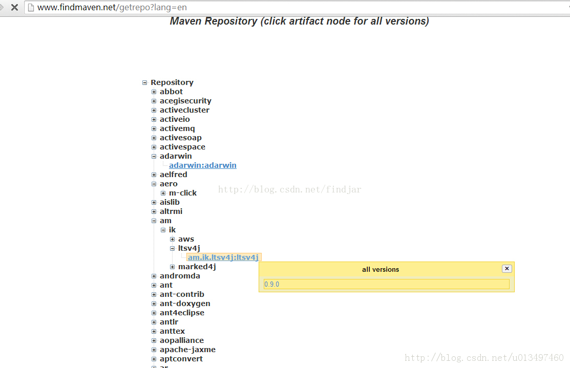 同一时候在这个站点还能够利用maven仓库找到相关的jar,http://www.findmaven.net/getrepo?lang=cn ,大家有兴趣能够试试
