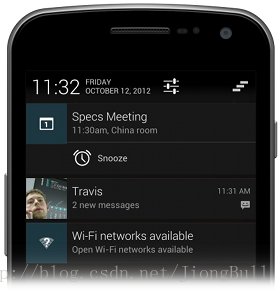当你告诉系统公布一条通知时,它首先在通知栏中表现为一枚图标。