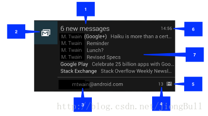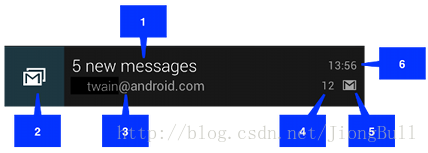 - 当通知展开时可见的大视图。大视图是展开的通知的一部分,Android 4.1以上可用。