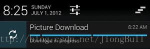 使用 setProgress(0, 0, true) (前两个參数能够忽略)把活动指示器加入到通知中然后公布就能够显示一个不确定时长的活动指示器。终于的指示器和进度条有一样的样式。仅仅是它的动画始终在运行。