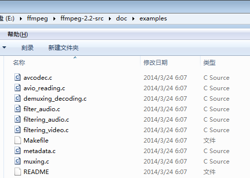 在网上搜索ffmpeg的学习资源,大体能够搜出两大类,一个是ffmpeg相关命令学习资料,也就是上一节中提到的在server端安装ffmpeg。然后通过命令的方式调用ffmpeg完毕音视频转换、转播等工作。这方面资料较多。另外因为本人没深入去研究这些命令使用方法,这里就不多讲了。还有一个就是ffmpeg api学习资料,api学习资料要比前者偏少些。对于ffmpeg api学习,在网上查来查去。回过头会发现最好的入门学习资料事实上是源代码doc/examples文件下的几个程序。这几个程序都是独立的demo演示样例程序。分别实现了媒体文件打开、音视频混合、音视频编解码等等基础且常见的功能,通过分析这几个demo演示样例程序,会逐渐掌握ffmpeg的api使用方法。这几个demo演示样例程序每一个文件大小不一样。推荐从体积最小的文件看起,即代码行数最少,这样也不会产生望而生畏的心态了。当然,仅仅分析源代码是远远不够的。还须要把这些demo执行起来,这样才干对ffmpeg的參数及调用逻辑有更深入的了解。后面会讲讲怎样在windows环境下搭建ffmpeg开发环境。