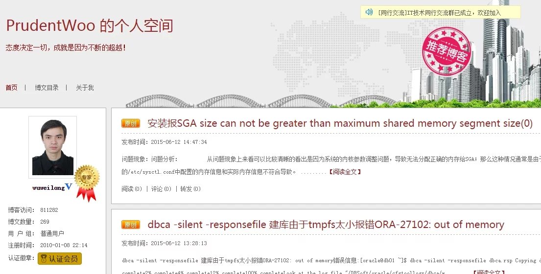 恭贺自己itpub和csdn双双获得专家博客称号