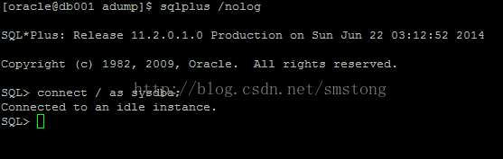 值得说明的是,这样的情况下,登录成功的唯一前提就是须要指定$ORACLE_SID环境变量。不须要侦听器,也不须要数据库载入。甚至不须要实例启动。如上图所看到的。实例没有启动。此时,会默认使用oracle的sys账户登录。