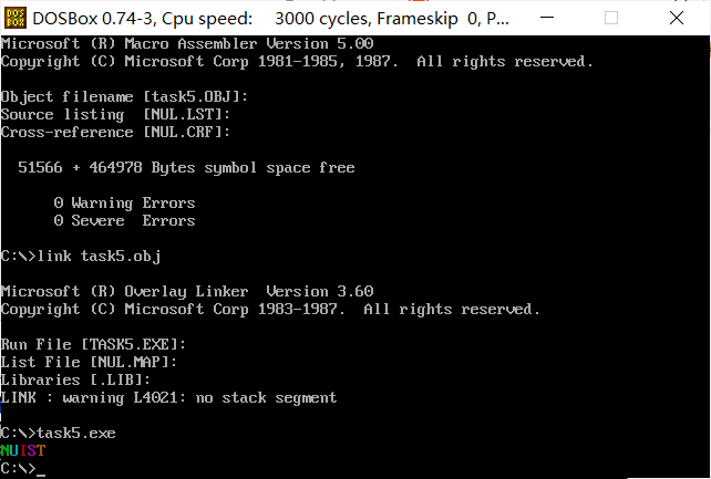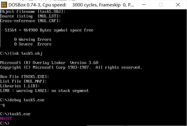 使用任意文本编辑器,录入汇编源程序task5.asm。
