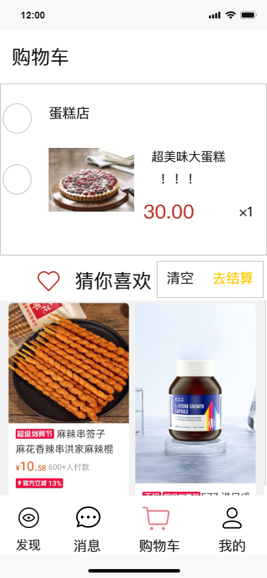 勾选商品,结算或清空