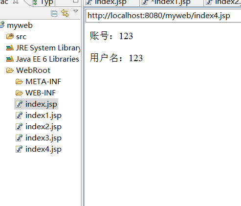 out.print("账号:" + account + "<br>" + "<br>"+"用户名:" + uname);