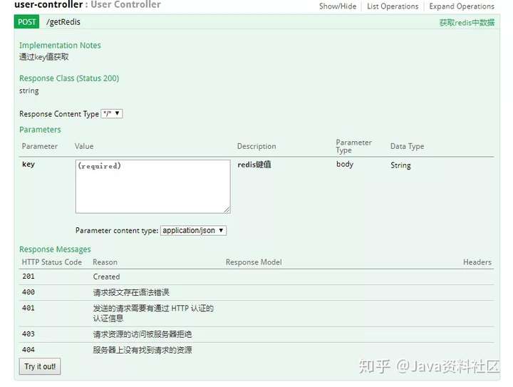 @ApiImplicitParam(name = "key", value = "redis键值", required = true, dataType = "String")