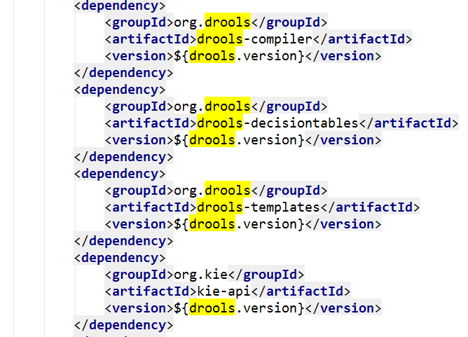 引入了springboot和drools的依赖,同时引入了kie-spring的集成依赖。