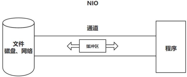 NIO在传输数据时,会在输入输出端之间建立通道,然后将数据放入到缓冲区中。缓冲区通过通道来传输数据