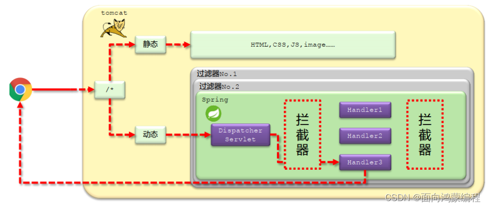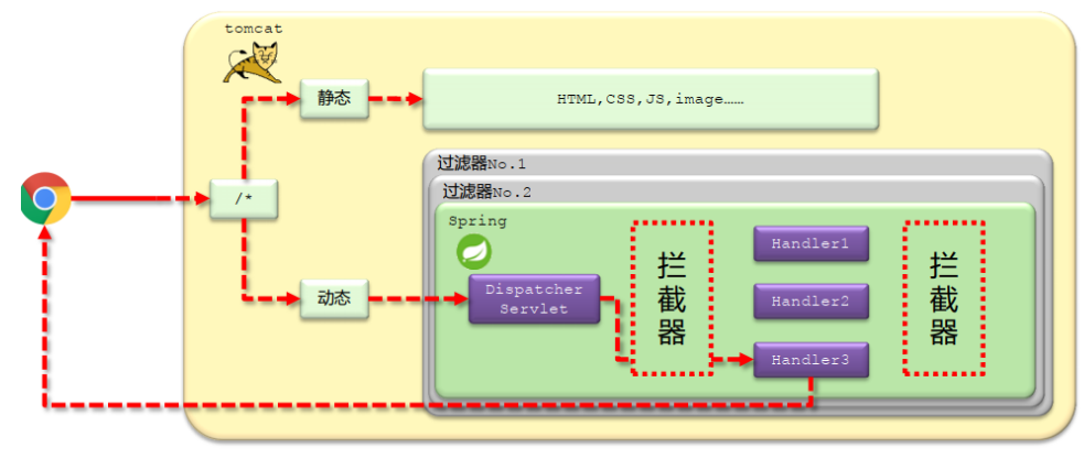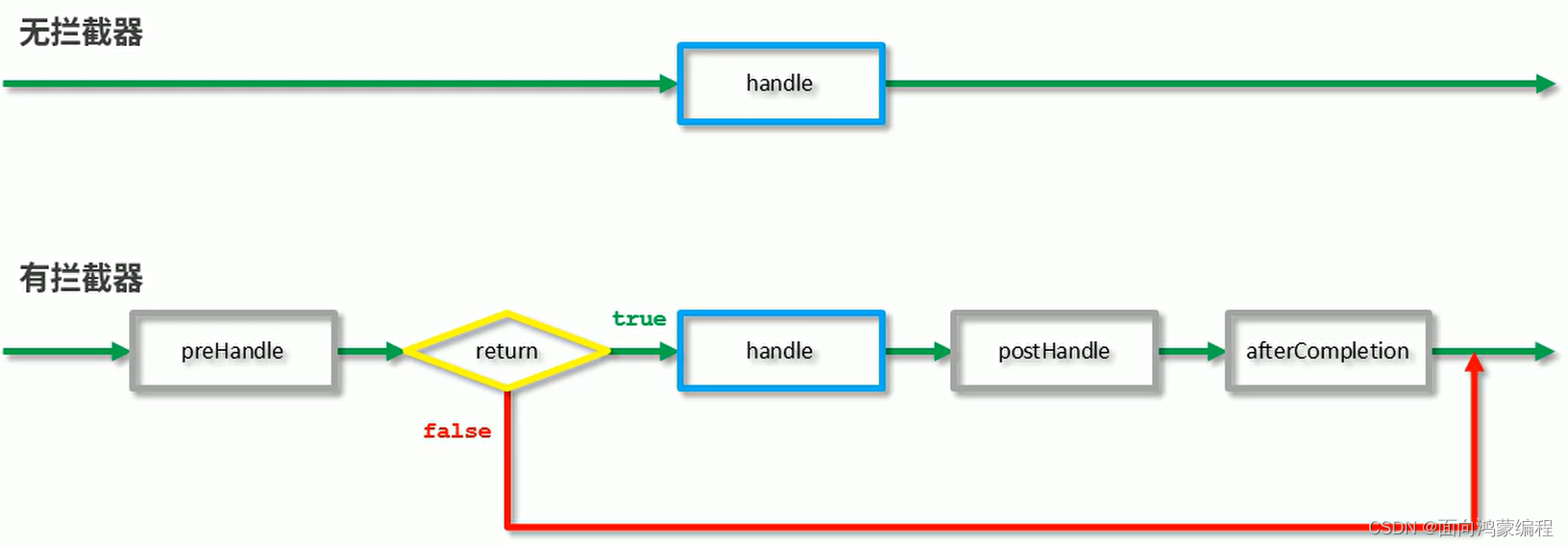 - 通过实现 HandlerInterceptor 接口或继承 HandlerInterceptor 接口的实现类(例如 HandlerInterceptorAdapter)来定义;