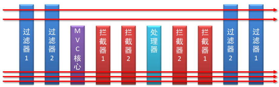 拦截器链:多个拦截器按照一定的顺序,对原始被调用功能进行增强
