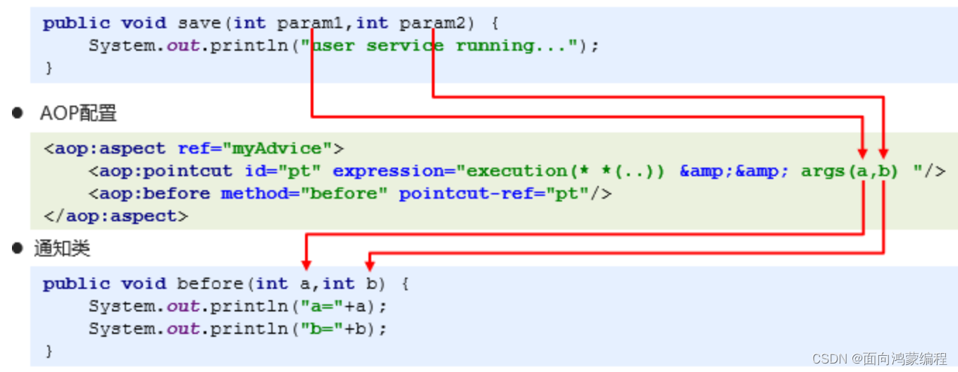 - 通知类中的变量名是a,b和XML中必须使用a,b(必须同名!)(强绑定!)