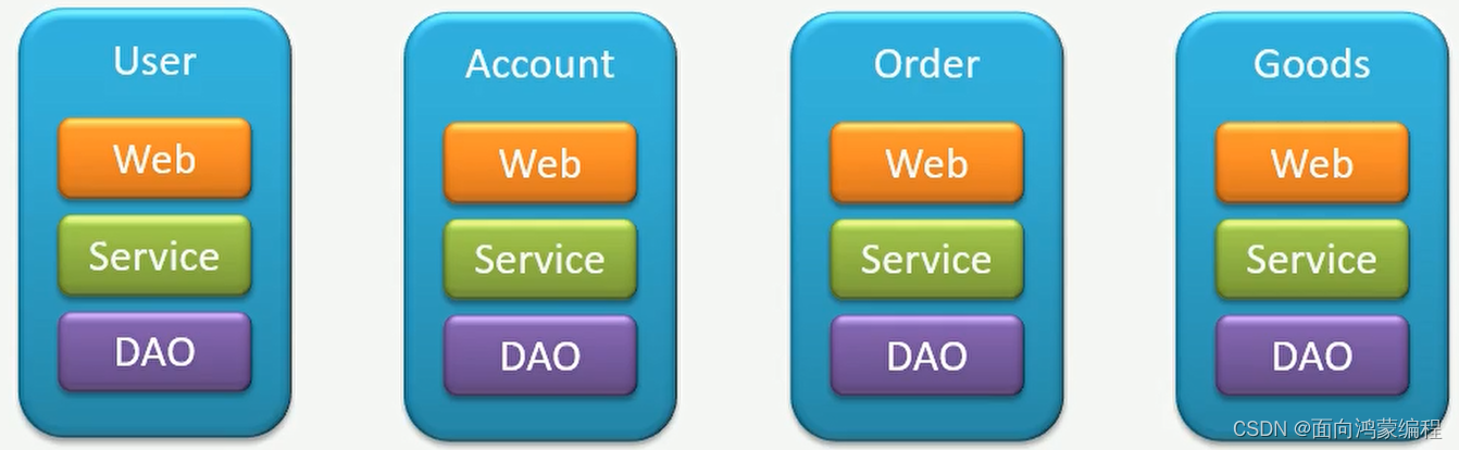 我们之前开发是使用三层架构的方式,每做一个模块都要开发他的表现层、业务层、数据层。