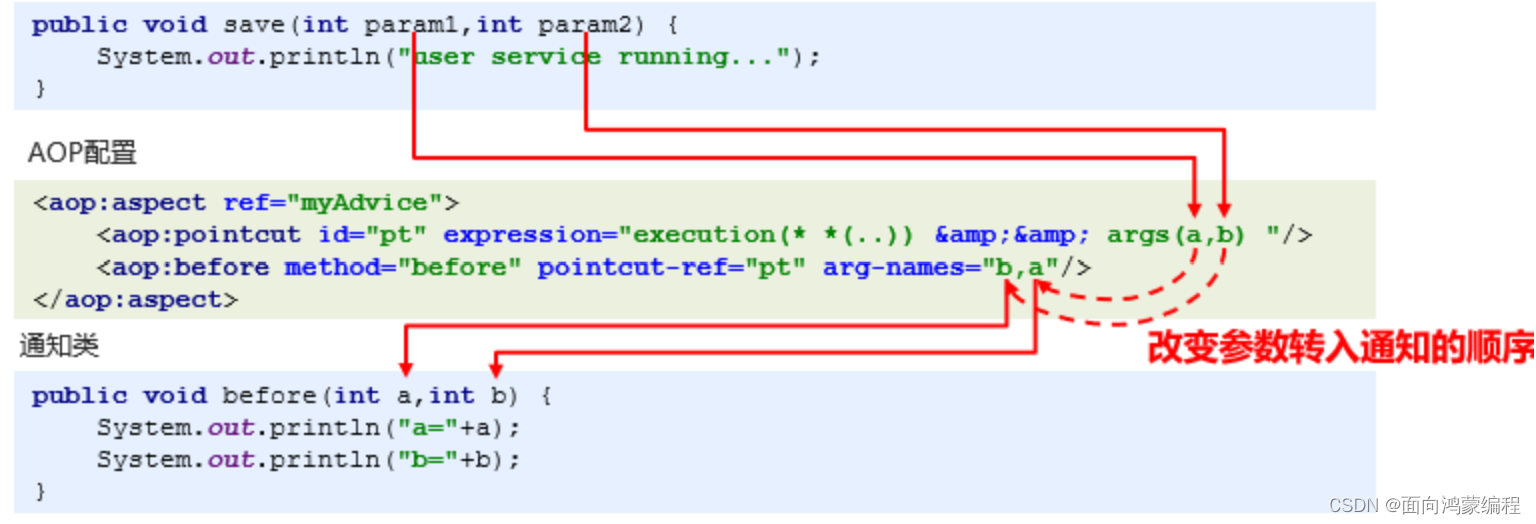 设定切入点表达式为通知方法传递参数(改变通知变量名的定义顺序)