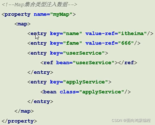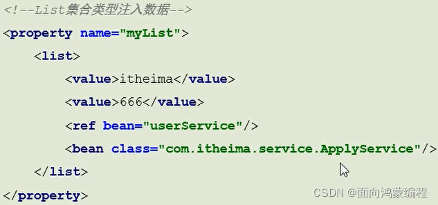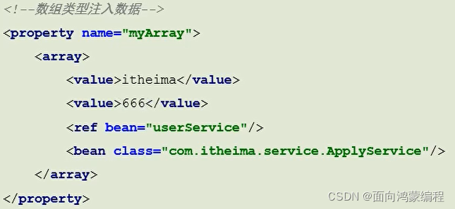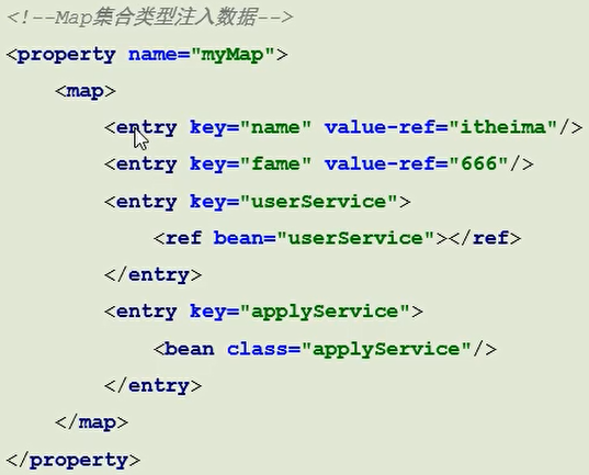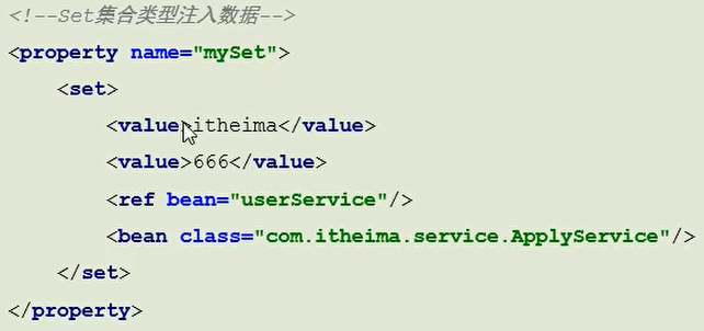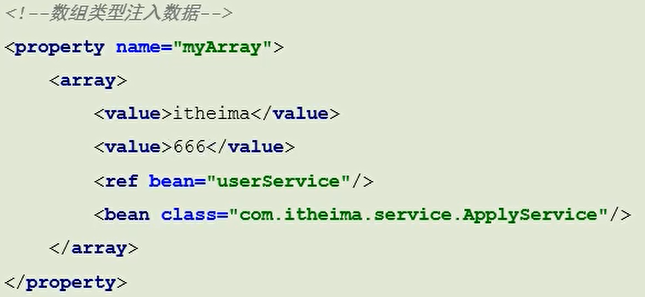 - 作用:注入集合数据类型属性