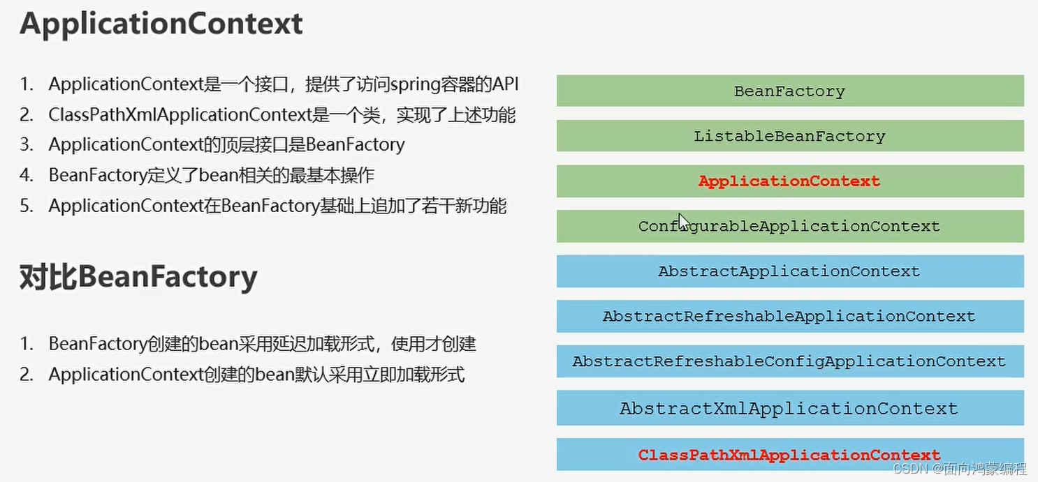 1.ApplicationContext是一个接口,提供了访问spring容器的API
