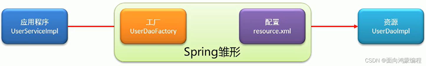 我们创建一个实现类,将其写到配置文件中,然后工厂类通过反射将配置文件的信息读取,业务层用工厂进行调用。