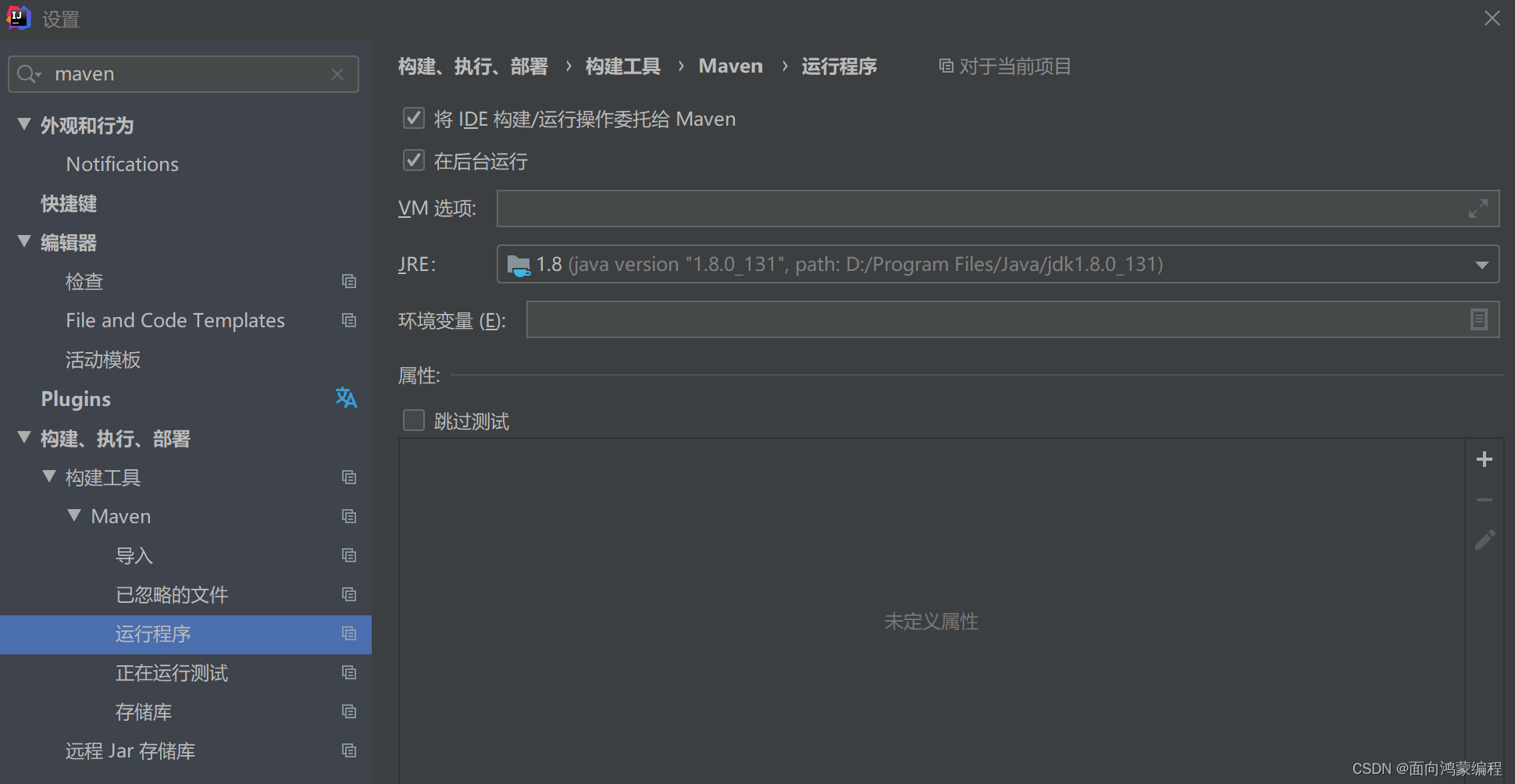 注意,如果等等程序运行后出错十有八九是下图的勾没有打上!——将IDE 构建/运行操作委托...