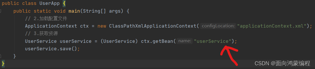 下图红色箭头的位置使用userService、b1、b2三个名称都是可以的!