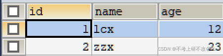 emmmmm...反正长这样子就行,其中id和age时Integer类型,name是varchar类型,数据库名db1;也可以你自己定,就是到时候后面的MyBatisConfig,xml里面的数据库名记得修改就行。