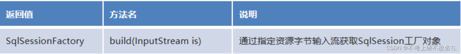 .getResourceAsStream("MyBatisConfig.xml");        (2)构建器SqlSessionFactoryBuilder
