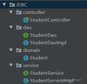 domain中的Student是实体类,controller、service、dao分别对应上述的3个层。