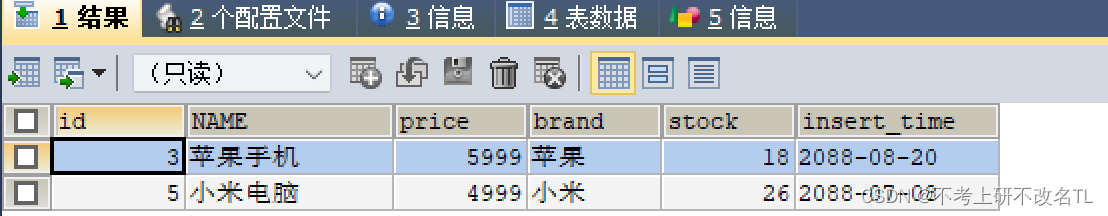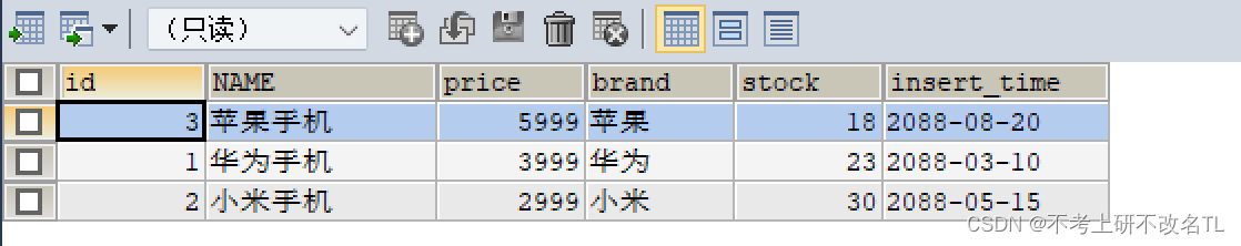 (3,'苹果手机',5999,'苹果',18,'2088-08-20'),