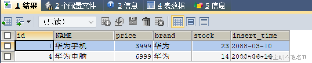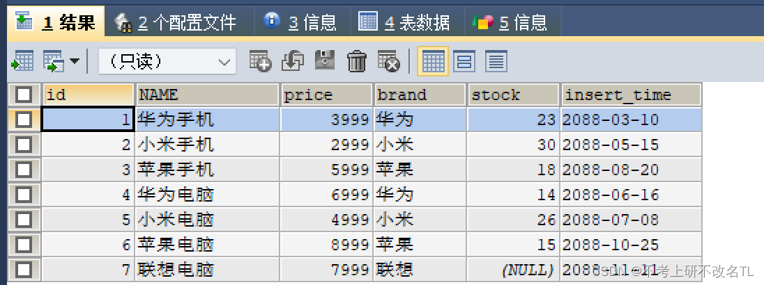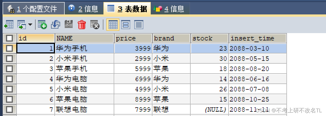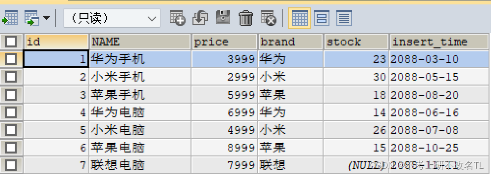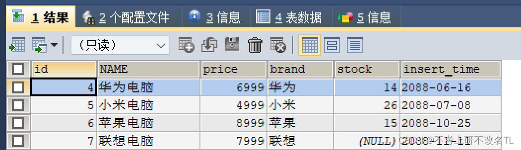 (4,'华为电脑',6999,'华为',14,'2088-06-16'),