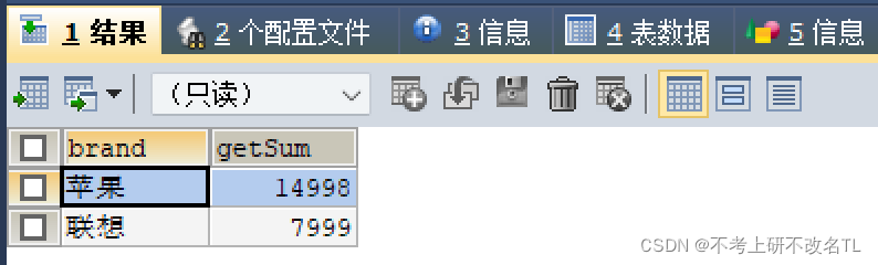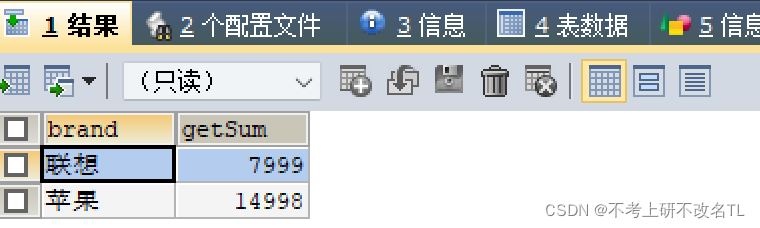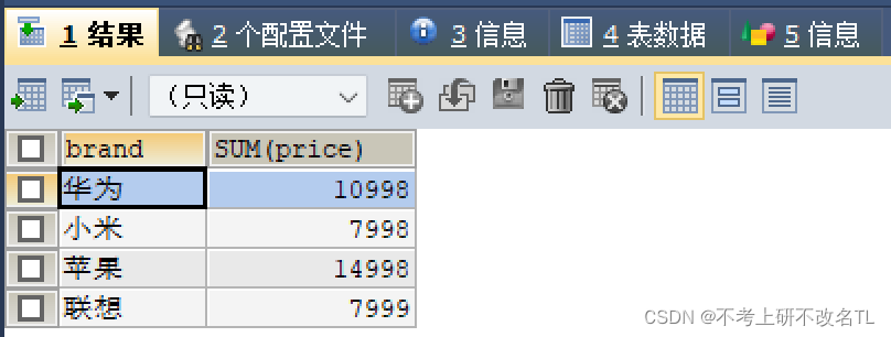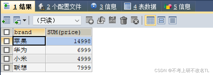 (2)查询名称中包含手机的商品信息。按照金额降序排序