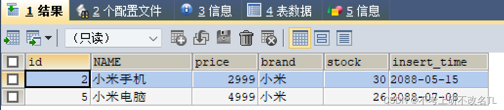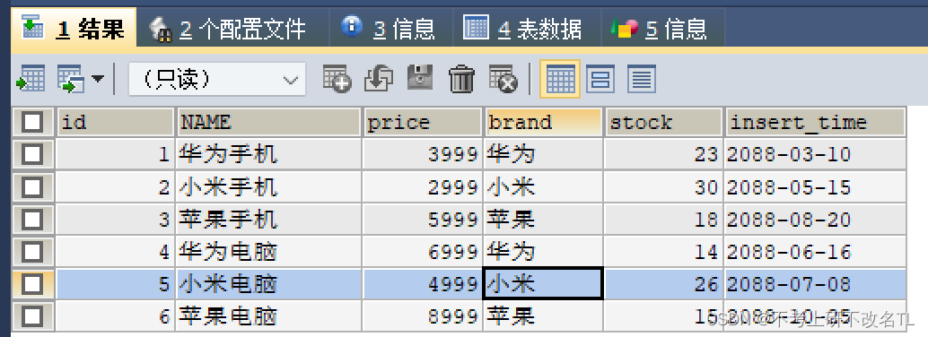 (5,'小米电脑',4999,'小米',26,'2088-07-08'),
