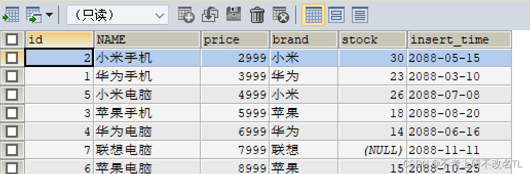 (2,'小米手机',2999,'小米',30,'2088-05-15'),