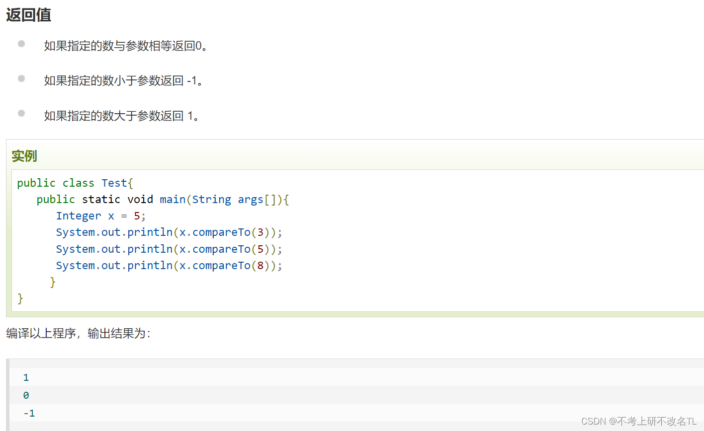 关于comparaTo()方法在菜鸟编程上有这样子的解释