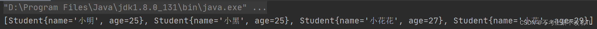 //[Student{name='小明', age=25}, Student{name='小花花', age=27}, Student{name='小花', age=29}]