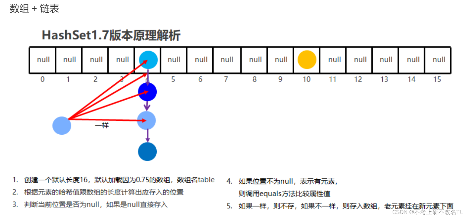 默认情况下,不同对象的哈希值是不同的。而重写hashCode()方法,可以实现让不同对象的哈希值相同