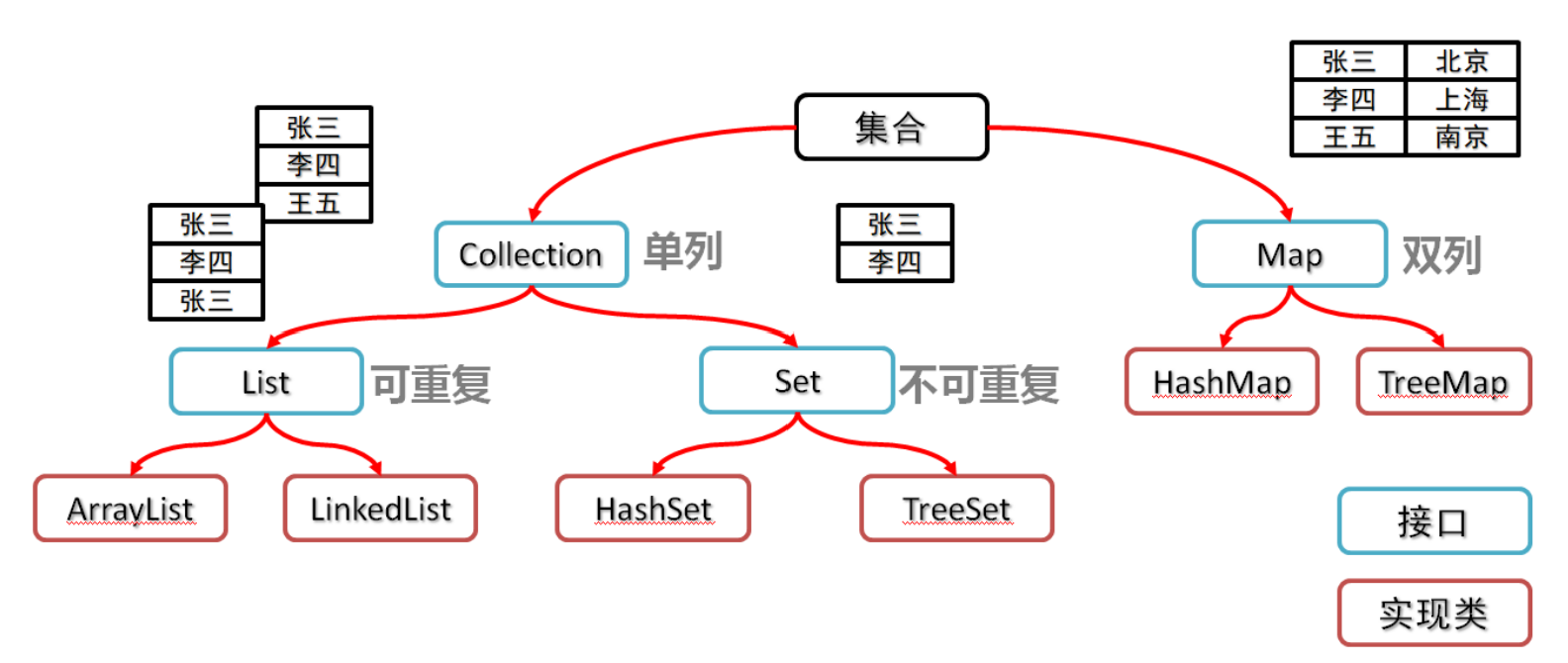 -  数组可以存基本数据类型和引用数据类型 集合只能存引用数据类型,如果需要存基本数据类型,需要存对应的包装类(int -> Integer)