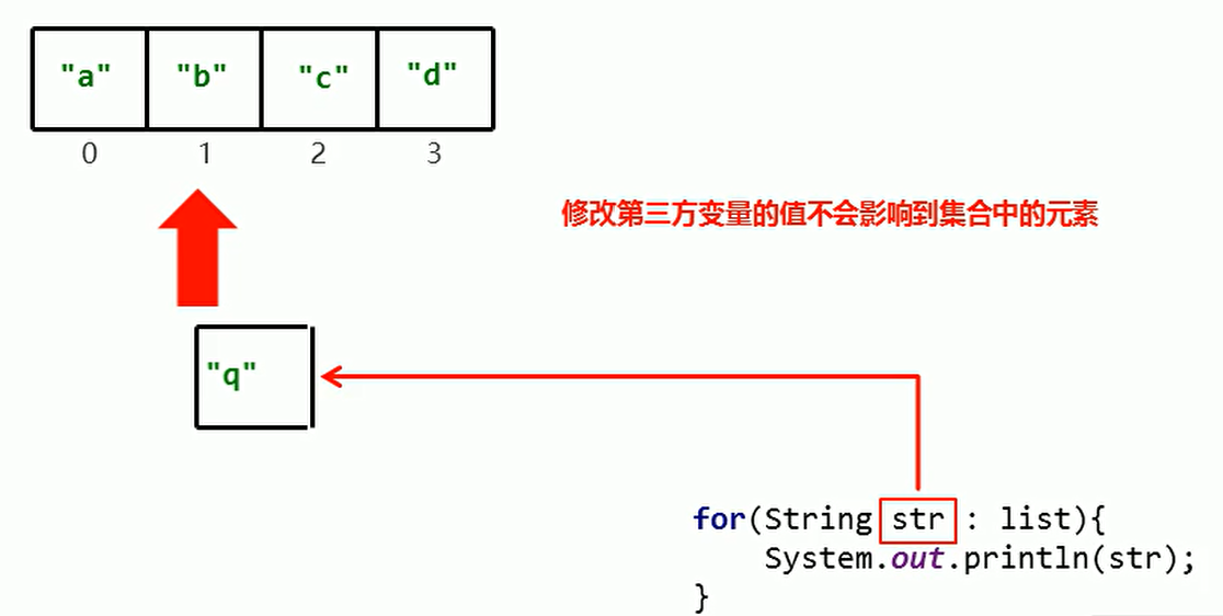 //2,str仅仅是一个变量名而已,在循环的过程中,依次表示集合或者数组中的每一个元素