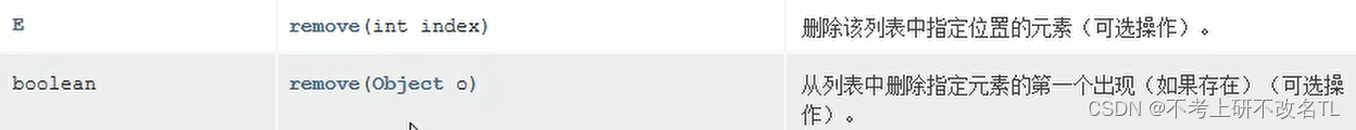 其中这里的remove()方法是下面第一个,与之前所学的不一样,之前是传入一个object对象,这里只是传入位置索引的值。