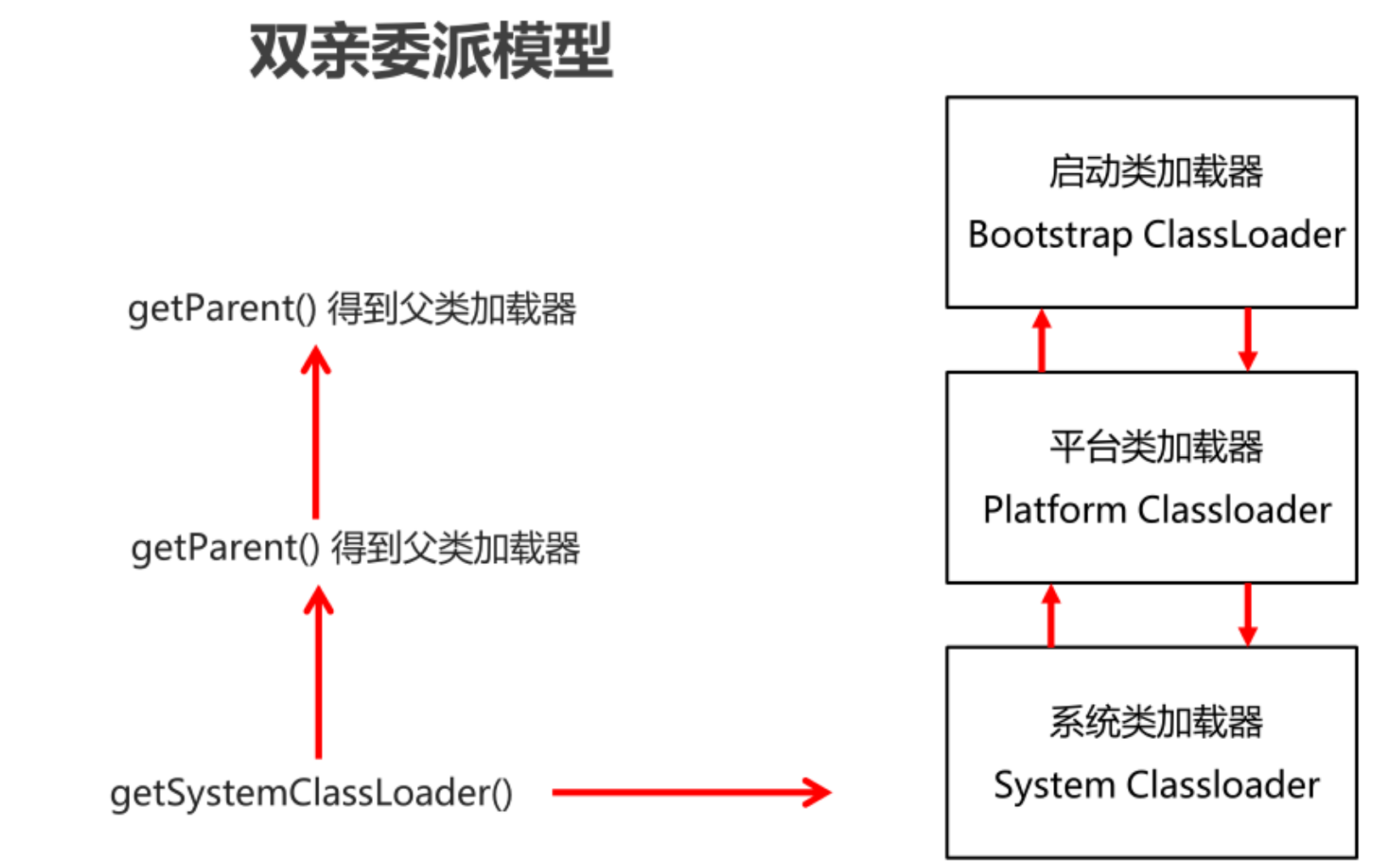 System的父加载器为Platform,Platform的父加载器为Bootstrap
