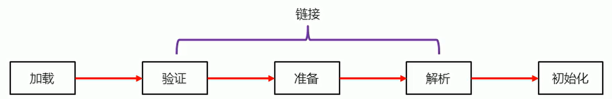在内存中生成一个代表这个类的java.lang.Class对象(任何类被使用时,系统都会未知创建一个java.lang.Class对象)