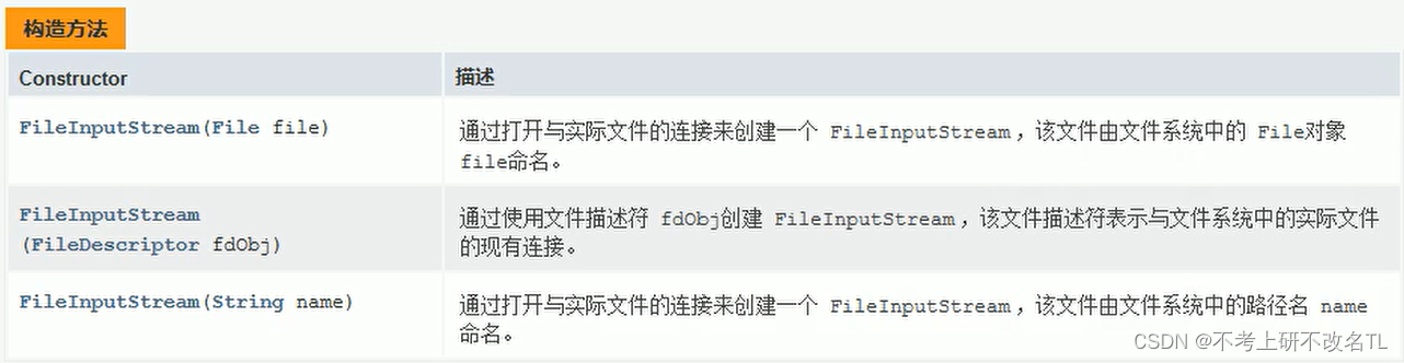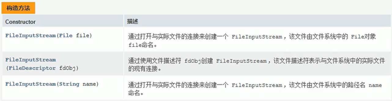 FileInputStream(String name):通过打开与实际文件的连接来创建一个FileInputStream,该文件由文件系统中的路径名name命名