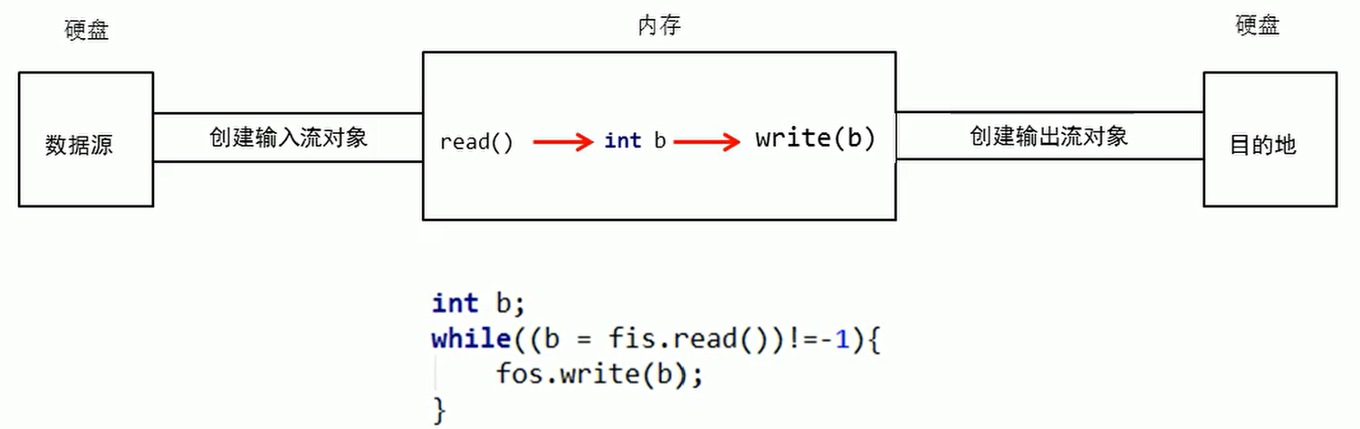 //读写数据,复制文本文件(一次读取一个字节,一次写入一个字节)
