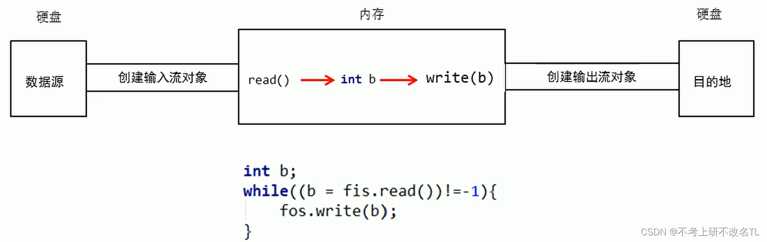 复制文本文件,其实就把文本文件的内容从一个文件中读取出来(数据源),然后写入到另一个文件中(目的地)