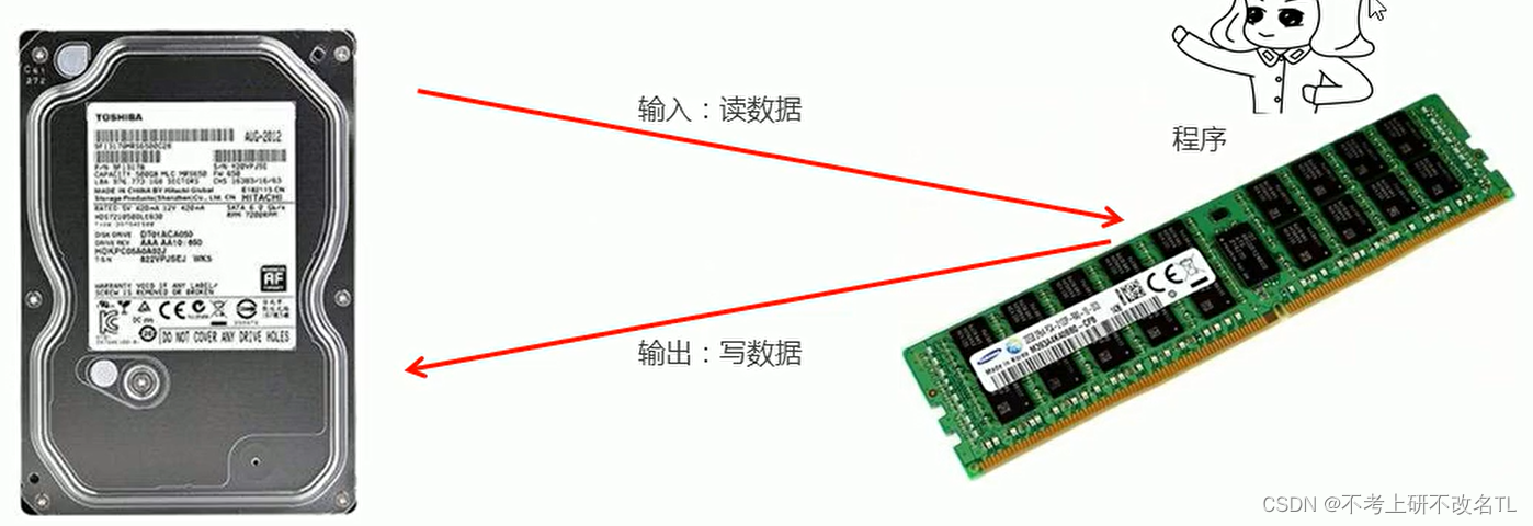 IO的数据传输可以看作是一种数据流动,以内存为参照物,进行数据读写。