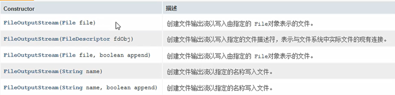 上述代码使用了2种构造方法创建FileOutputStream对象。