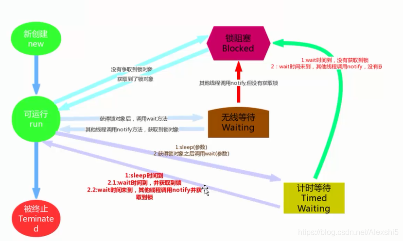 | BLOCKED | 当一个线程试图获取一个对象锁,而该对象锁被其他的线程持有,则该线程进入Blocked状态;当该线程持有锁时,该线程将变成Runnable状态。 |