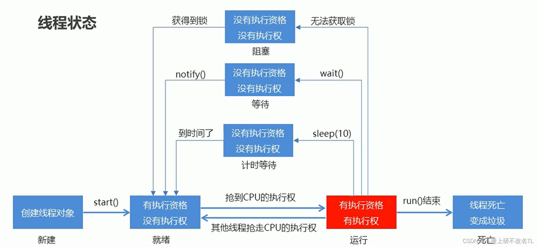 | TERMINATED | 一个完全运行完成的线程的状态。也称之为终止状态、结束状态 |
