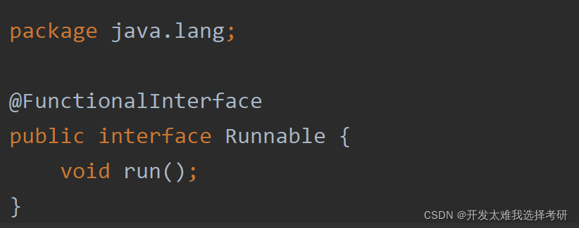 这里异常的抛出是用了try-catch的方式,我们可以ctrl + B 进入Runnable接口中看看