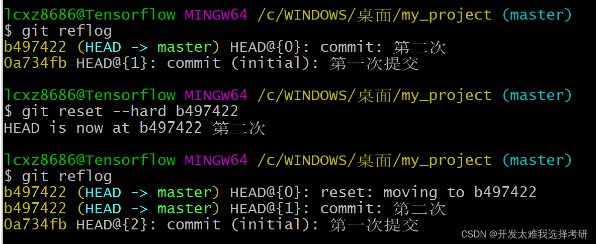 git reset --hard “版本的唯一索引值” :git的版本切换