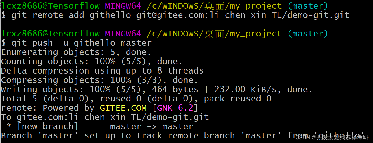 在gitee上面就有了本地仓库的master的分支